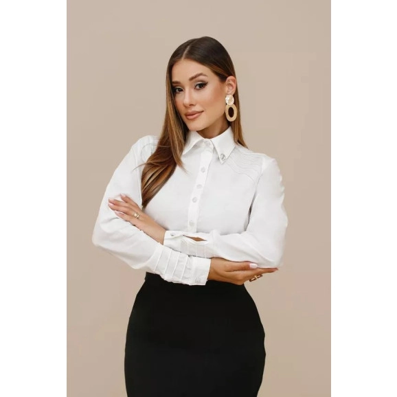 Camisa slim em tricoline com elastano, manga longa e detalhes de nervuras que valorizam a peça.