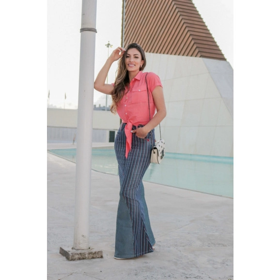 Detalhe: Camisa possui bolsos no busto, fechamento em botões frontais, detalhe em amarração. Peça fresquinha, moderna, ideal para compor vários looks!