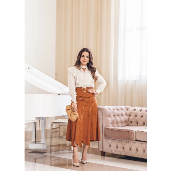 Camisa com Babados kauly a camisa possui babados, recorte na gola, lastex no punho, fechamento em botões laterais. A composição da camisa é 100% poliester. Camisa tendência, para você curtir a estação!
