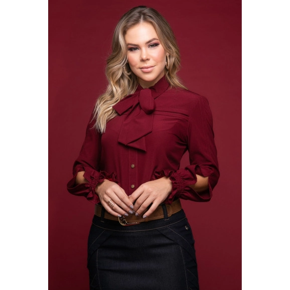 Camisa Detalhe nas Mangas Vinho Via Tolentino
