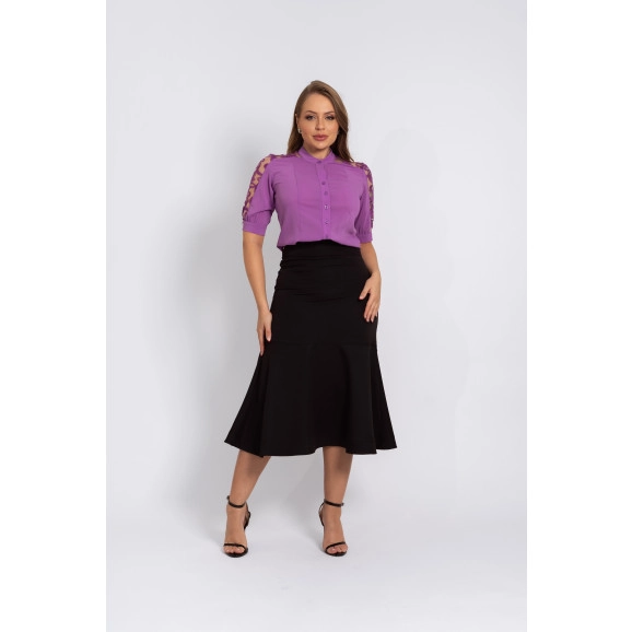 Camisa em crepe c/ recortes renda (95% Poliester, 05% Elastano)