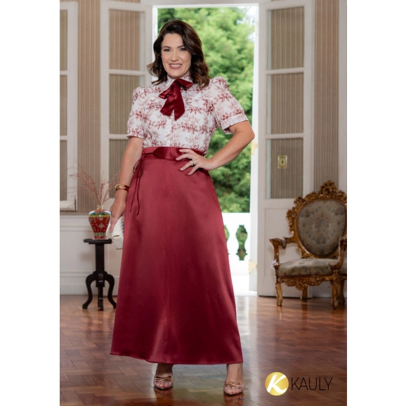 Camisa em laise c/ det.laço no pescoço removível (100% algodão)