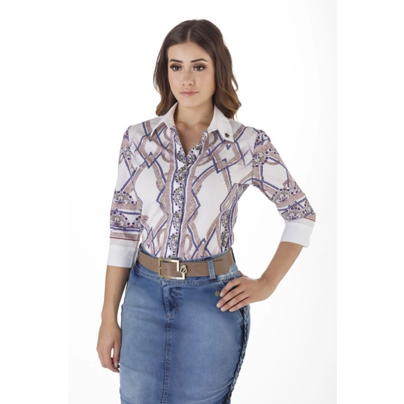 Detalhe: camisa estampada, fechamento em botões frontais. Peça delicada e super charmosa, ideal usar com saias lisas.
