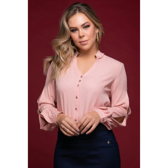 Camisa Manga Longa Recortes Rosa Via Tolentino