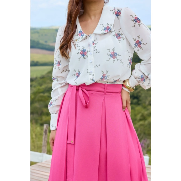 Camisa Mileide Em Chiffon Toque De Seda Branco Jany Pim