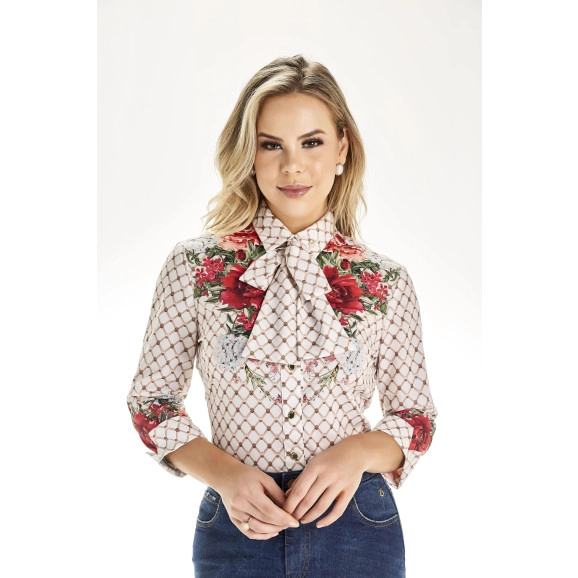 Detalhe: camisa possui fechamento em botões na frente, gola laço (removivel) Peça delicada e super charmosa, ideal usar com saias lisas.