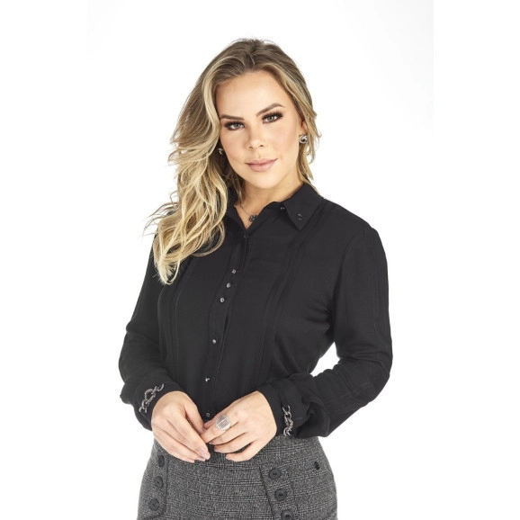 Camisa Preta Detalhe Corrente Via Tolentino