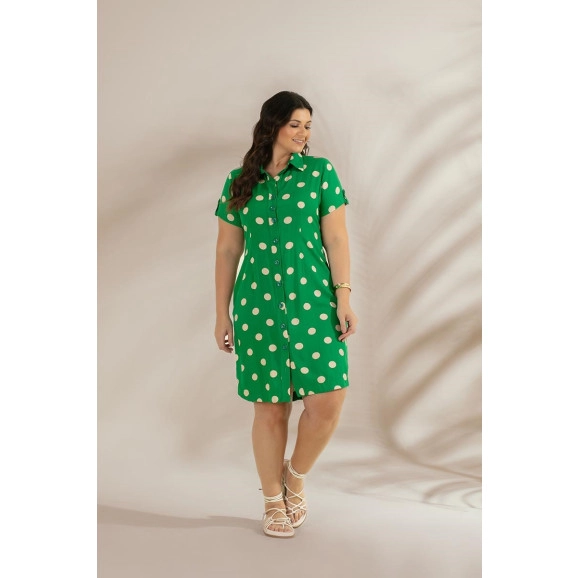 Chamise Plus Size confeccionada em Viscose Slub poá