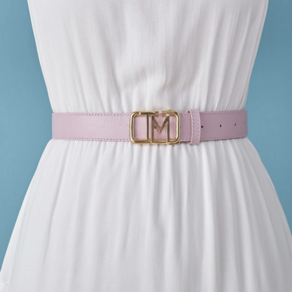 Cinto em Couro Rosa Tatá Martelo confeccionado em couro legítimo com fivela personalizada (TM) em dourado (6cm).