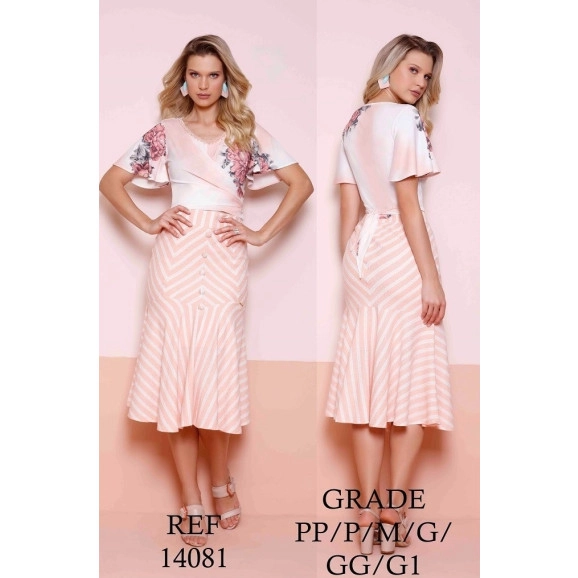 Detalhe: A blusa possui bordado na gola, amarração. A saia possui detalhe em botões, fechamento em zíper lateral. Um look para ser usado durante o dia ou a noite, em reuniões de trabalho!