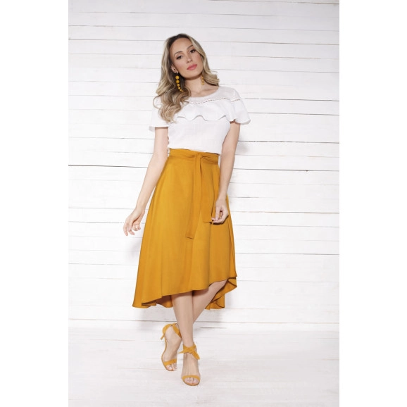 Detalhe: A blusa do conjunto possui babado, detalhe bordado na gola. A saia possui detalhe em amarração na cintura e fechamento em zíper atrás.Um look clássico para você usar em qualquer ocasião!