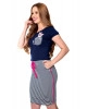 Blusa de malha com babadinho nas mangas, estampa local de gatinho saindo do bolso. Saia de malha listrada, com bolsos funcionais, detalhe nas laterais e roletê na malha lisa. Composição: 49% viscose- 49% poliéster- 2% elastano. Conjunto super fresquinho, ideal para usar com tênis!