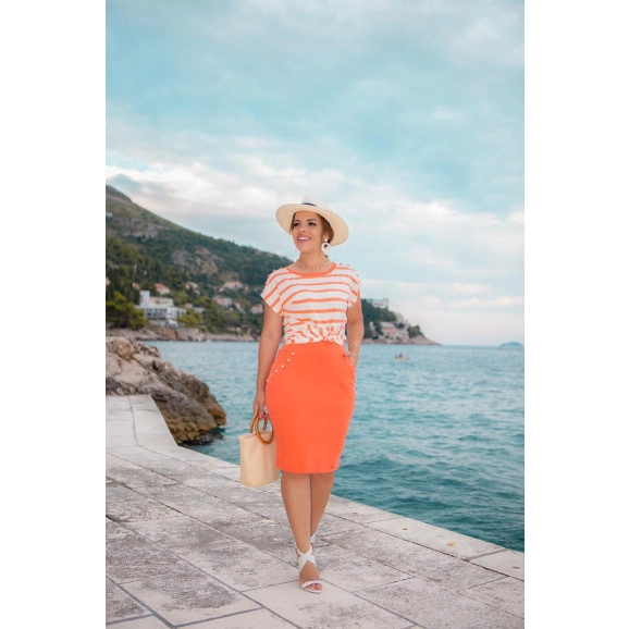 Conjunto Blusa Listras Laranja Boutique K