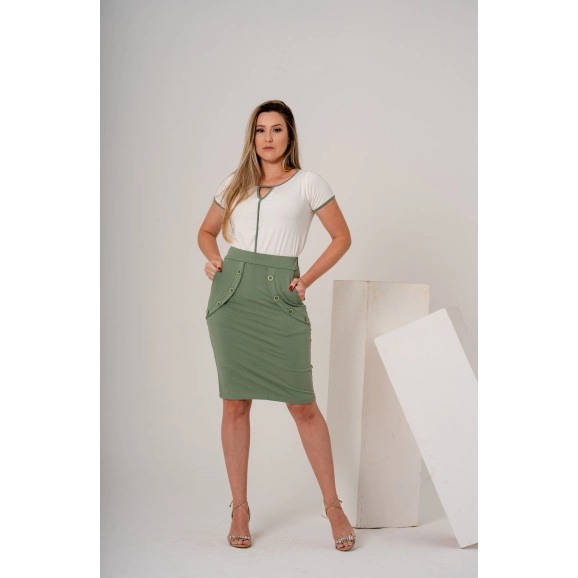 Conjunto com Detalhe Saia Verde, a saia é confeccionada em moletinho, a blusa confeccionada em malha viscolaycra. Aquele look para o conforto do seu dia a dia!