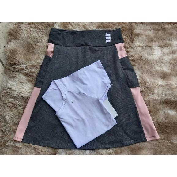 Conjunto com Saia Branca Moda Fitness, blusa lisa, saia com elástico na cintura, possui bolsos laterais, confeccionado em 90% Poliamida 10% Elastano