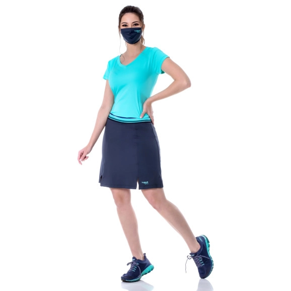 Conjunto de Malha Verde Hapuk, blusa e saia shorts com tecidos tecnológicos, apropriados para a prática de exercícios. A saia contém elástico colorido no cós e estampa personalizada na barra. Acomapanha máscara. Proteção UV 50+ Composição: 90% Poliamida 10% Elastano. Aqui você encontra diversos modelos de moda fitness, venha escolher o seu! -