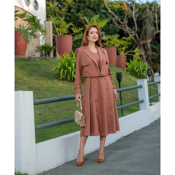 CONJUNTO LINHO AVELÃ , VESTIDOMIDI CAVADO LADY LIKE C/ BOLSOS EJAQUETA TREND BOXE (94% VISCOSE6% ELASTANO)
