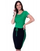 Conjunto de Malha Verde Hapuk, blusa de malha com galão listrados nas mangas. Saia de malha com recortes e combinações de tecidos na laterais. Composição: 96% Viscose 4% Elastano Forro: 100% Poliester. Conjunto super confortável, ideal para usar nos passeios com a família!