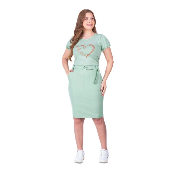 Conjunto Elaine Em Malha Lisa E Malha Canelada Verde Hapuk