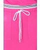 Conjunto confeccionado em moletinho e malha. Blusa com estampa frontal e detalhes em viés nos ombros e mangas. Saia com cós duplo, sendo um com elástico interno e o outro elástico listrado aparente, cordão fixo, bolsos funcionais e possui forro.