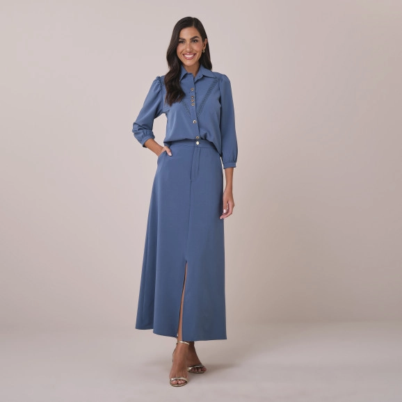 Conjunto Elizabete Em Crepe Londres Com Renda Azul Tata Martello