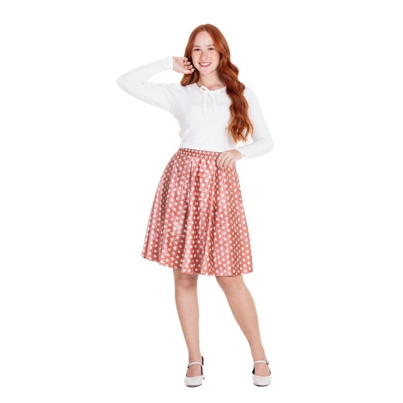 Conjunto confeccionado em malha canelada e veludo de poá. Blusa em malha canelada, decote com detalhe em guipir e fechamento traseiro no decote por botão. Saia em veludo poá, cós com elástico interno e possui forro. Composição blusa 96% poliester 4% elastano saia 100% poliester | forro 100% poliester