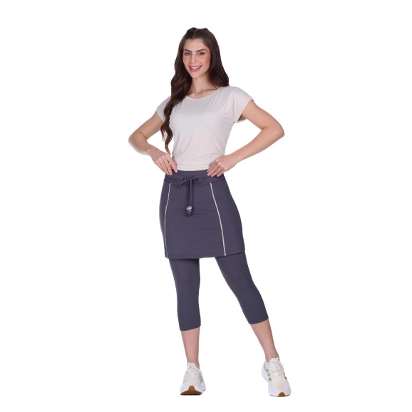 Composição: blusa 91% poliamida 9% elastano saia calça 85% poliamida 15% elastano