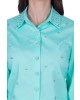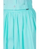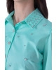 Conjunto confeccionado em tecido plano. Blusa com fechamento frontal por botões, botões funcionais nos punhos e detalhe em bordado manual frontal de pedras. Saia com shape balonê, fechamento por zíper traseiro, bolsos funcionais e possui forro.