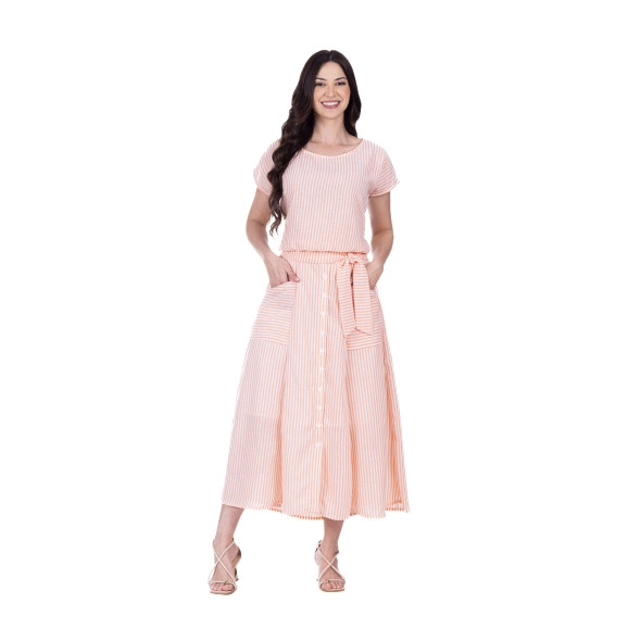 Conjunto Izaura Em Tecido Plano Listrado Laranja Hapuk