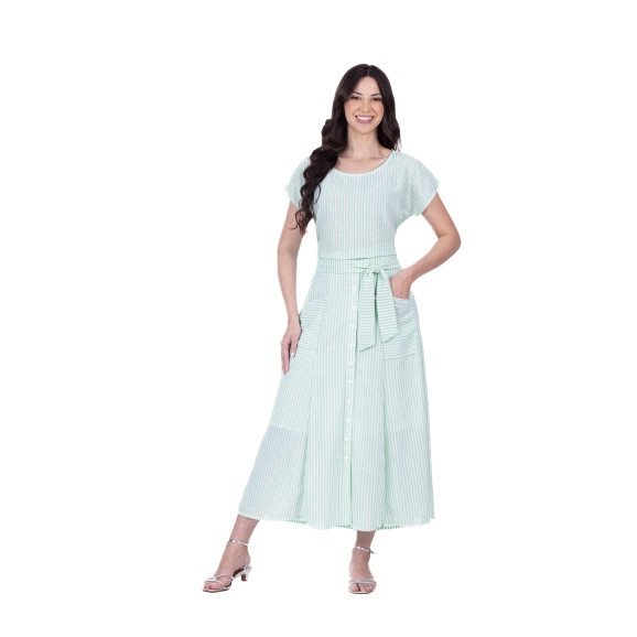 Conjunto Izaura Em Tecido Plano Listrado Verde Hapuk
