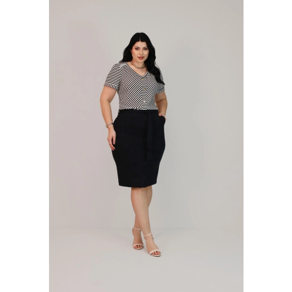 Conjunto Jessi em Malha Blusa com Decote "V" Listrada Nítido