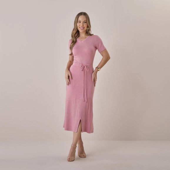 Conjunto Julia Em Malha Canelada Rosa Tata Martello