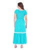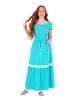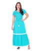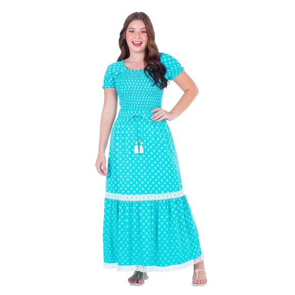Conjunto confeccionado em tecido plano. Blusa com elástico interno no decote, corpo em lastex. Saia com elástico interno no cós e viés fixo, babados com guipir e possui forro.