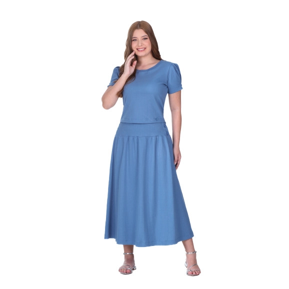 Conjunto Marleide Em Malha Texturizada Azul Hapuk