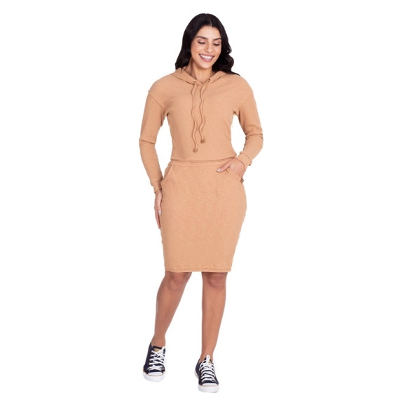Conjunto confeccionado em malha ribana. Blusa com capuz, detalhe ilhós e acabamentos a fio. Saia com elástico interno no cós, bolsos funcionais e possui forro. Composição Blusa e saia 70% algodão 24% poliester 6% elastano Forro da saia 100% poliester