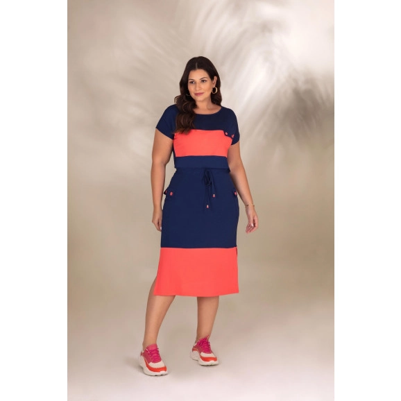Conjunto Midi Plus Size De Malha Lisa Com Recortes Biclores Hadaza