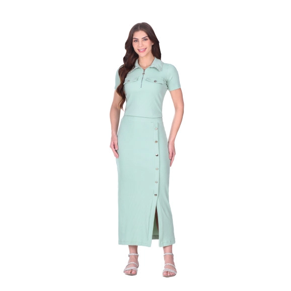 Conjunto Roberta Em Malha Canelada Verde Hapuk