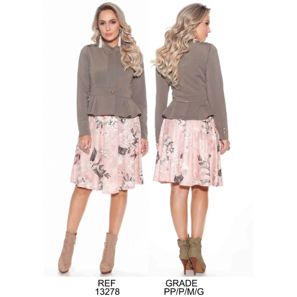 Detalhe: a jaqueta do conjunto possui fechamento em botões. A saia possui modelagem evase. Look elegante e quentinho, para você brilhar ainda mais!