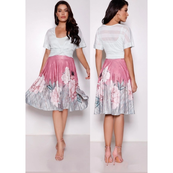 Produto: Conjunto Saia Estampada Rosa Fasciniu's