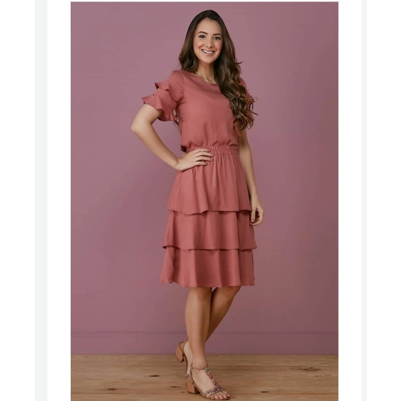 Conjunto Tata Martello Karoline confeccionado em viscose,manga curta com detalhe em babado, saia midi três marias e elastico na cintura. Composição: 100% Viscose.