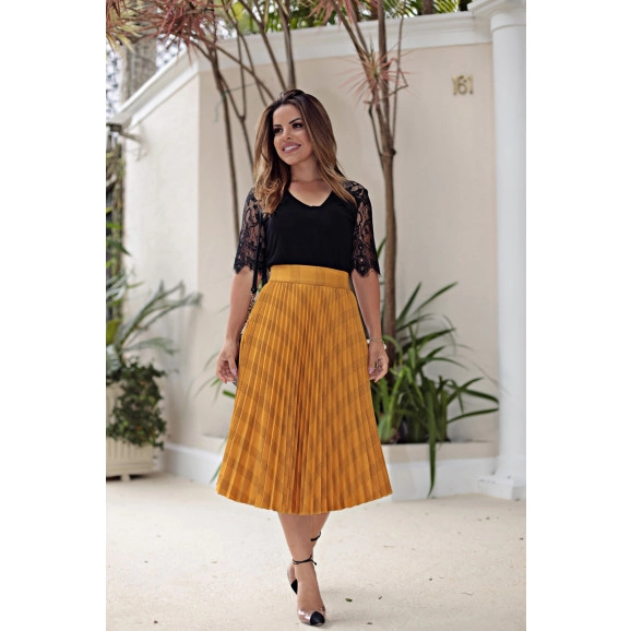 Produto: Conjunto Saia Plissada Mostarda Kauly