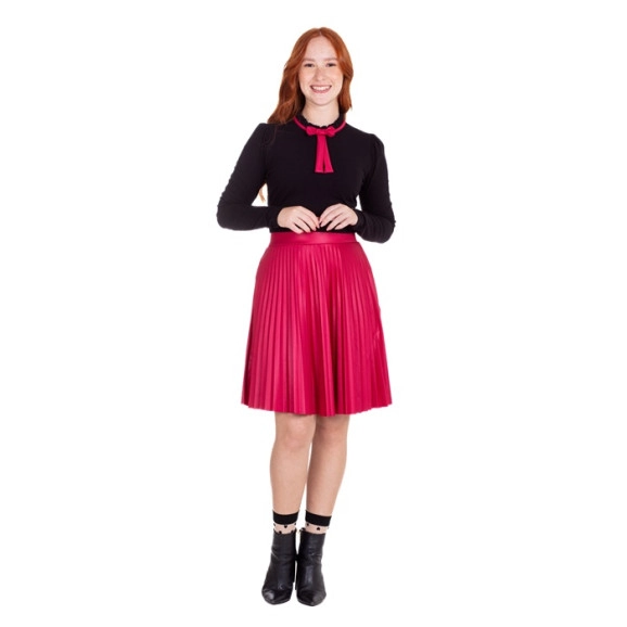 Saia calça confeccionada em malha, calça legging e saia sobreposta com shape em A. Composição saia calça 77% poliamida 23% elastano.