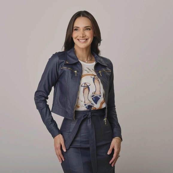 Jaqueta Alicia Em Bengaline Resinado Preto Tata Martello