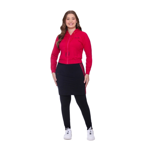 Jaqueta confeccionada em malha poliamida,com fechamento frontal por zíper destacável, capuzcom ilhós e cadarço funcional, estampa frontal,mangas com punho e detalhe de nervuras no cós.