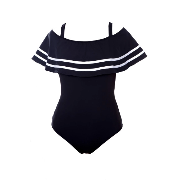 Maiô de tecido poliamida, possui alcinha, babado no decote, forro e bojo.