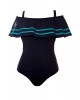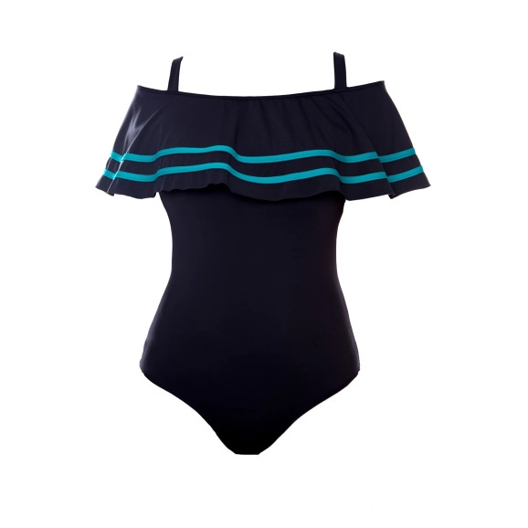Maiô de tecido poliamida, possui alcinha, babado no decote, forro e bojo.
