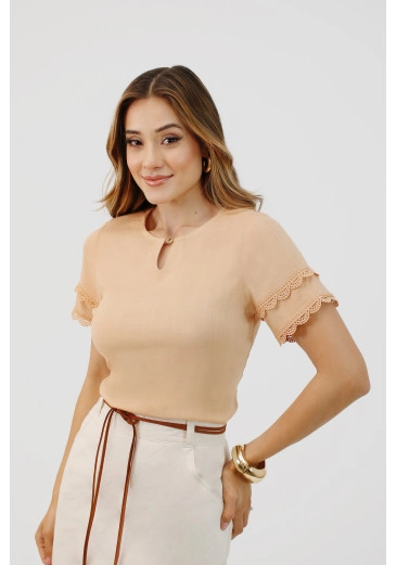 Blusa Iris Em Viscolinho Bege Nitido Primavera/Verão 2026