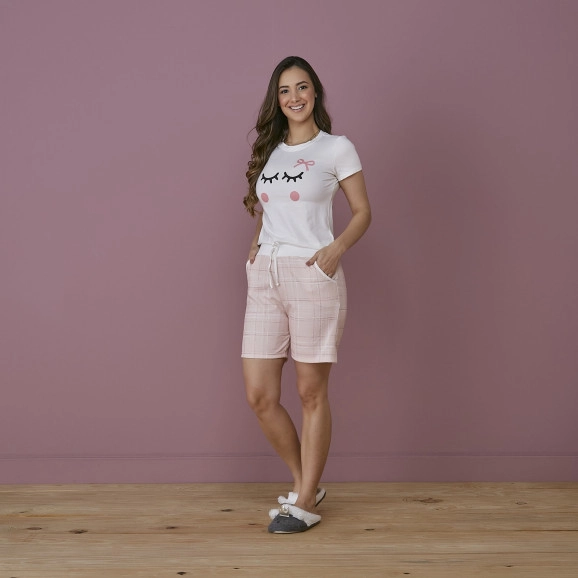 Pijama Shorts Xadrez Rosa