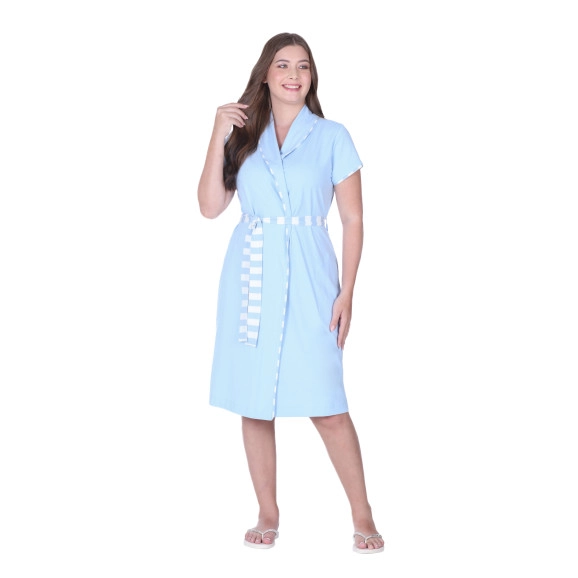 Roupão Antonela em Malha de Algodão com Faixa Listrada Hapuk