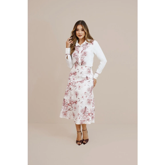 Saia Açucena Em Midi De Alfaiataria Fluida Branca Nitido
